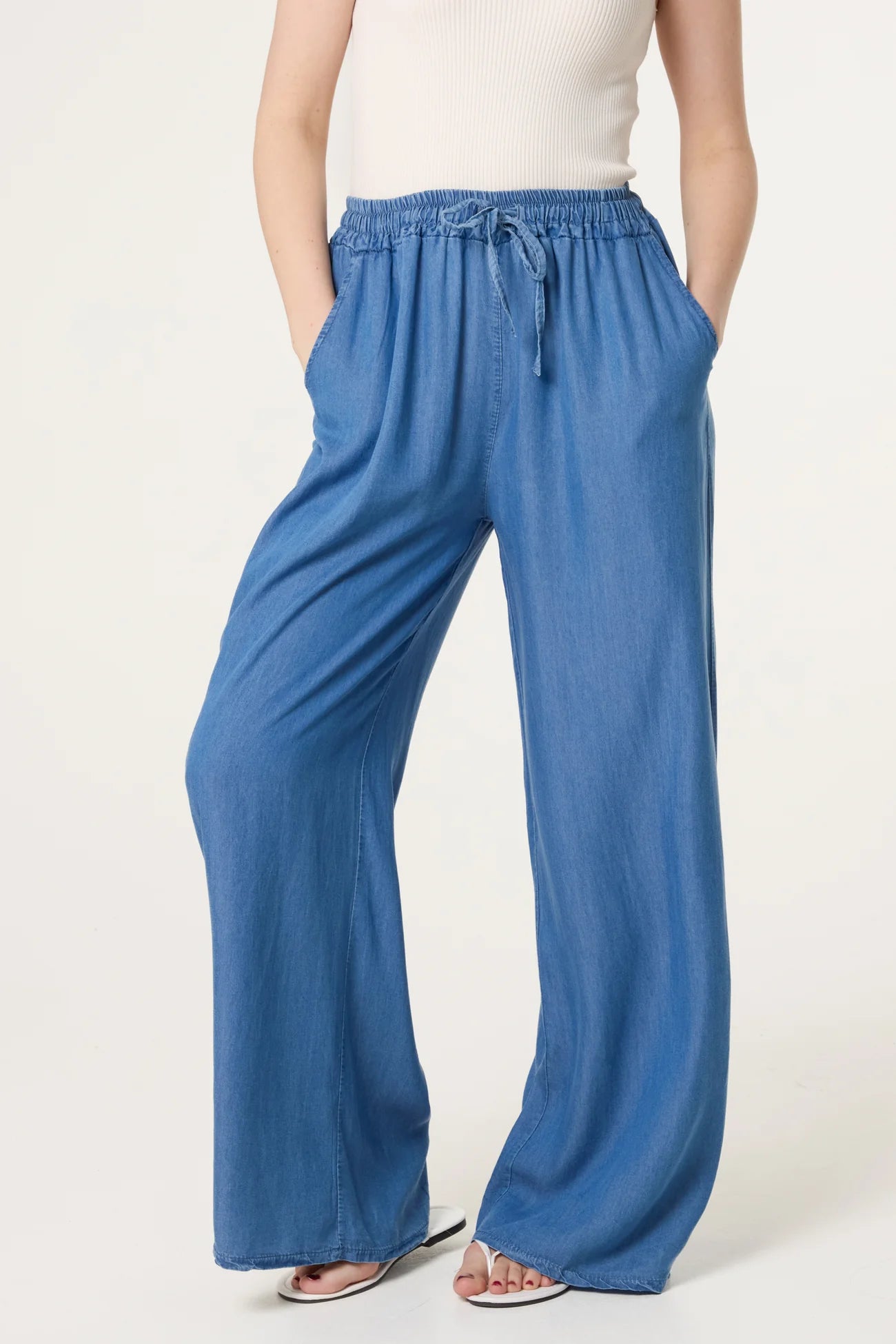 Denim Tencel Wide Leg Trouser